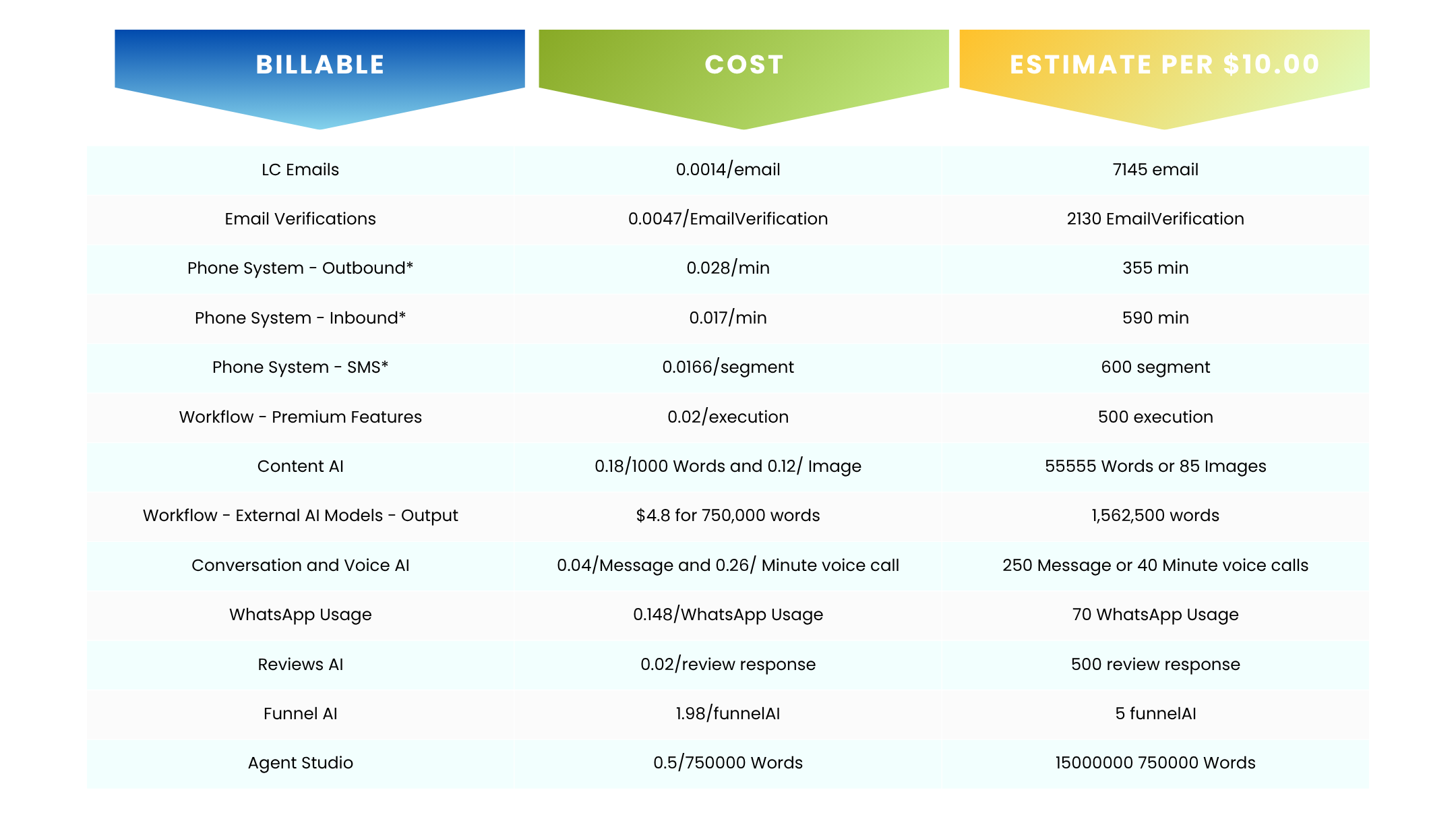 Note: Phone Number Purchase, A2P Registration, and Call Transcription Charges are separate. Please contact support.
