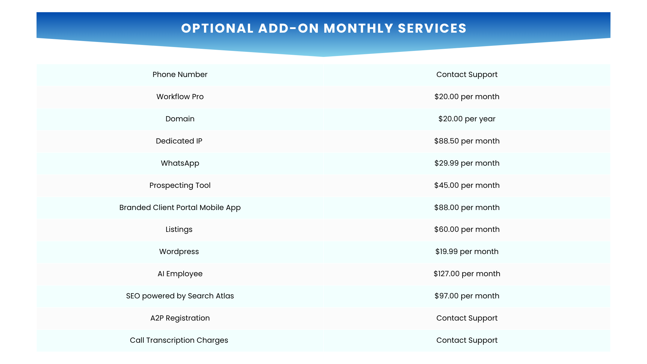 Your monthly subscription includes your service hours and CRM access, while certain features are billed based on actual usage - so you only pay for what you use.